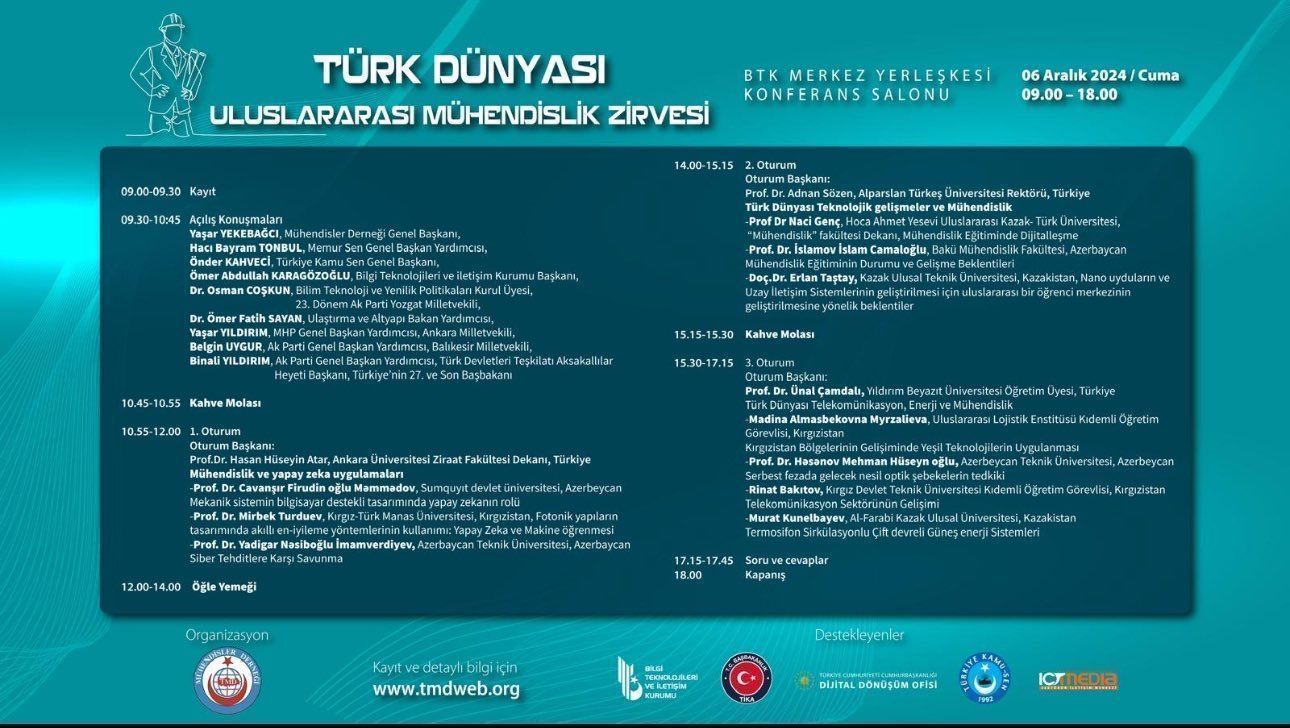 Bu zirve, yalnızca bir günlük bir etkinlik olmanın ötesinde, Türk dünyası ülkeleri arasında mühendislik alanında kalıcı iş birliği platformlarının temellerini atmayı ve ortak bir vizyon geliştirmeyi hedeflemektedir. Türk dünyasının kalkınmasının ve gelecekteki başarısının anahtarı olan mühendislerin yolunu açmak, onları hak ettikleri konuma taşımak için birlikte harekete geçiyoruz.