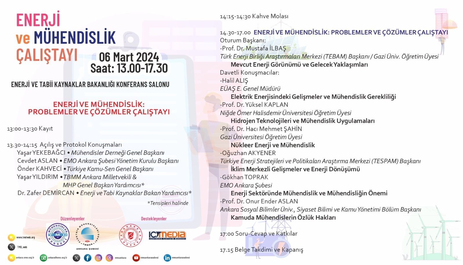 Ülkemizdeki enerjinin durumu, teknolojisi, politikası, sektör mühendislerinin problem ve çözümlerinin ele alınacağı “Enerji ve Mühendislik” konulu panelimize katılımınız bizi onurlandıracaktır.